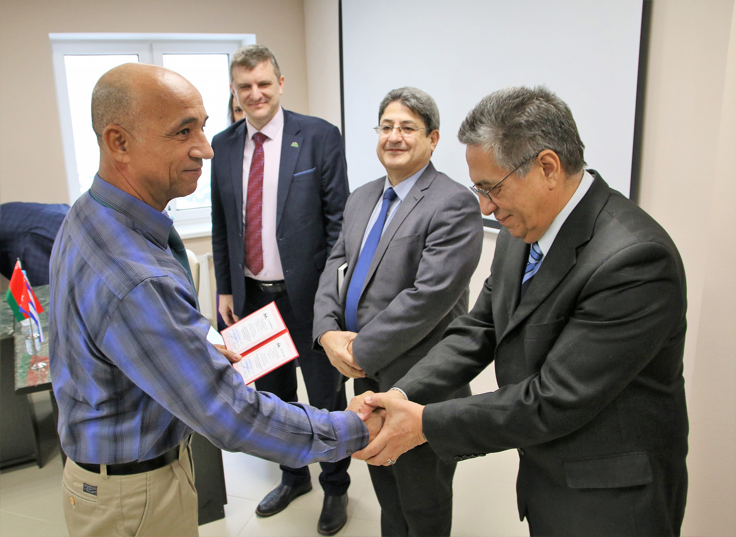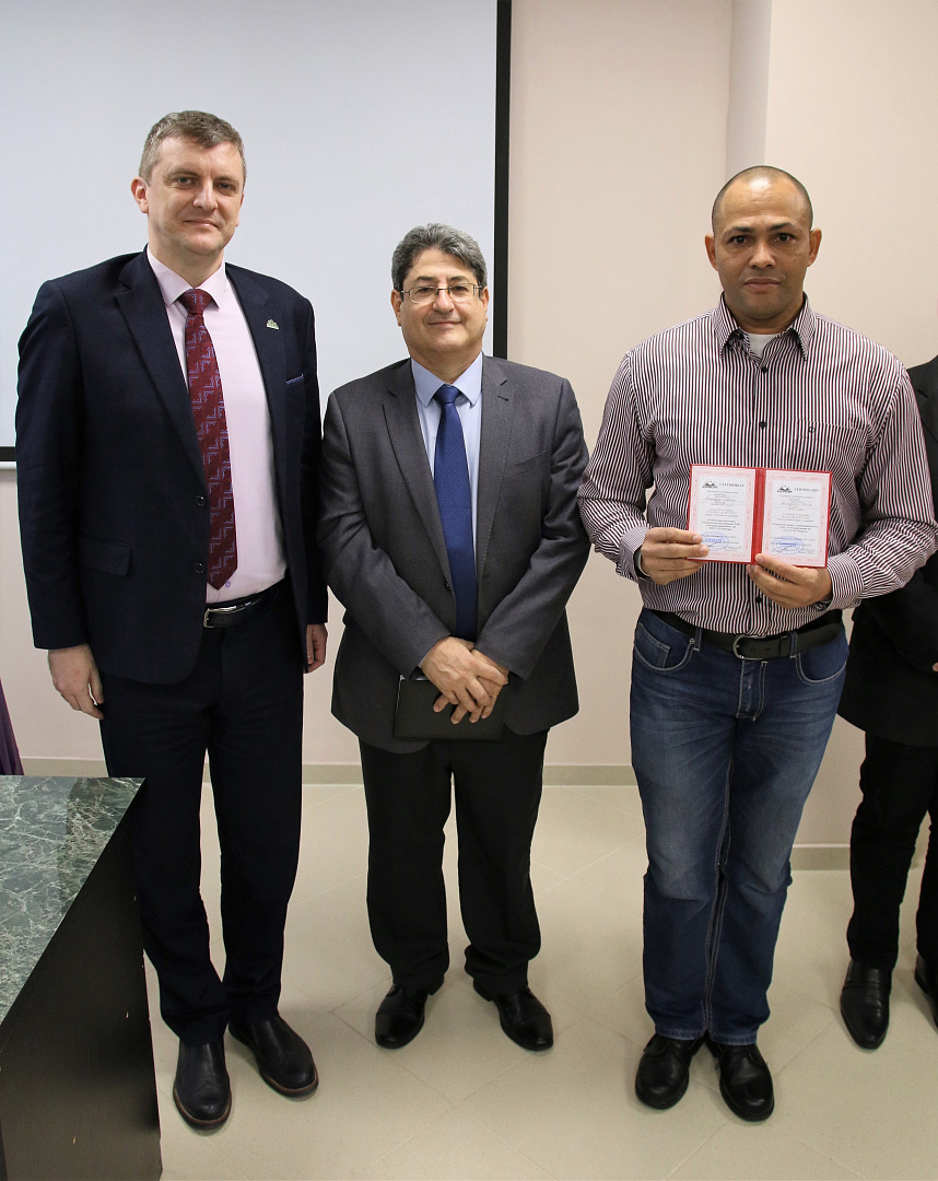 The certificates of graduation were presented to the Cuban partners in a solemn atmosphere by the director of JSC "ALEVKURP" Vladislav Novak. Ambassador Extraordinary and Plenipotentiary of the Republic of Cuba to the Republic of Belarus Santiago Perez Benitez and General Director of SOFTUE "BELSPETSVNESHTECHNIKA" Gennadiy Timoshevich also took part in the event.