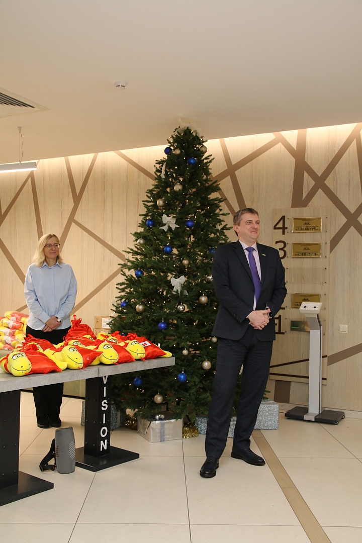 У предприятия есть отличная традиция – в преддверии Нового года вручать детям сотрудников подарки. Не стал исключением и 2024 год: в торжественной обстановке директор ОАО «АЛЕВКУРП» Новак Владислав выступил перед коллективом с пожеланиями успеха, добра и процветания в новом году.После произнесенной поздравительной речи детям сотрудников предприятия были вручены сладкие подарки с приятным сюрпризом.