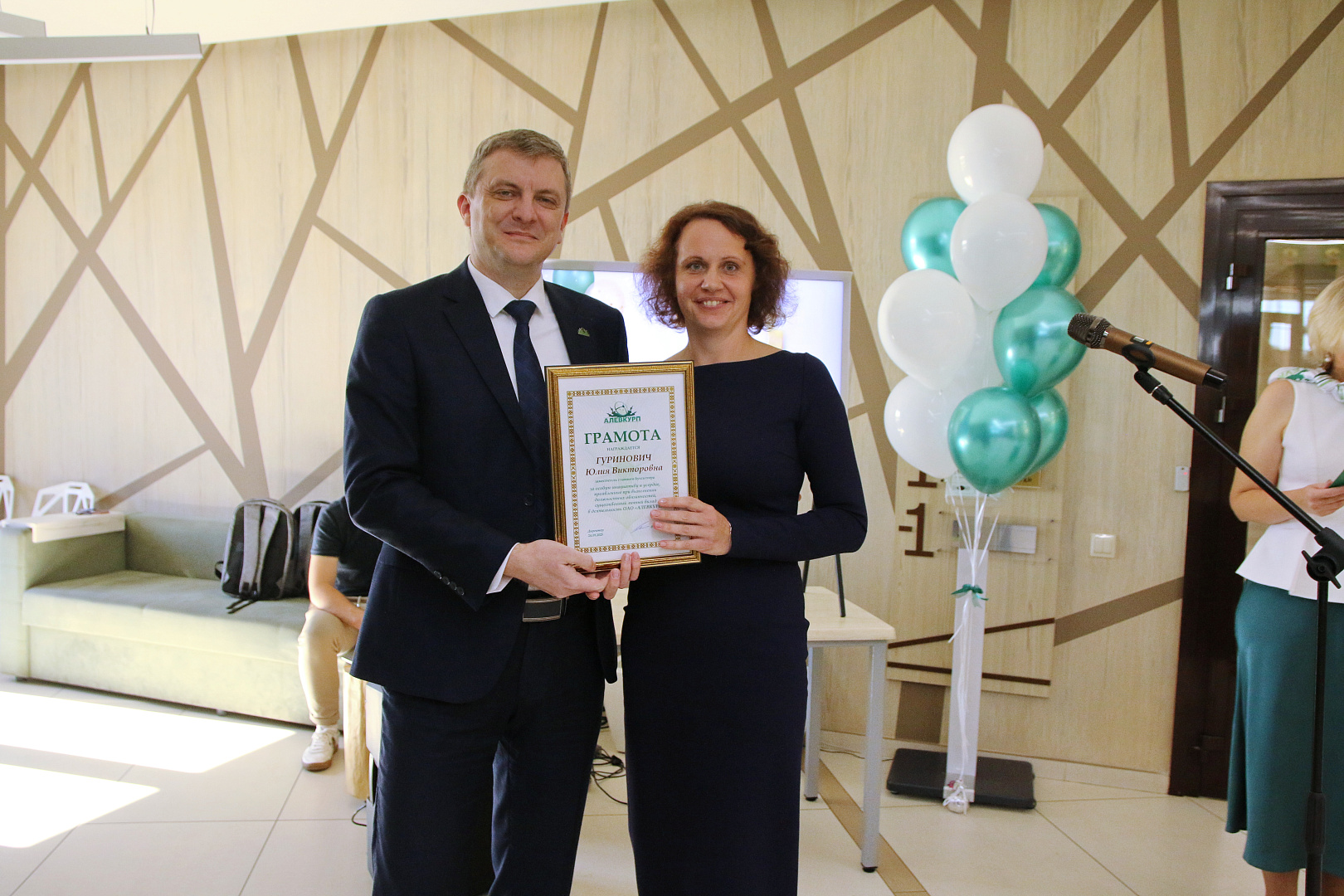 Коллективу в торжественной обстановке зачитали текст поздравления Председателя Государственного военно-промышленного комитета Республики Беларусь Дмитрия Пантуса. Затем слова поздравления в адрес работников прозвучали от руководства Общества, после чего были подведены итоги за прошедший год и определены задачи на ближайшую перспективу. Особо отличившимся за этот период сотрудникам вручили грамоты и благодарности директора ОАО «АЛЕВКУРП» Владислава Новака.